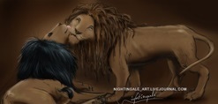 La película avanzaba y Pumba no dejaba de darle vueltas al asunto de las apariencias y de los leones, de pronto creyó imaginarse a su papi Tom, también como un león, uno que acariciaba a su papi Bill, dando lametones como ellos hacían con sus hociquitos.